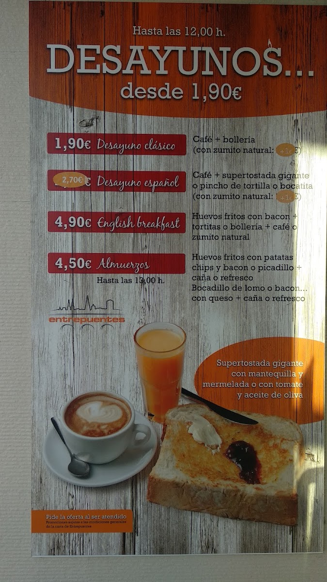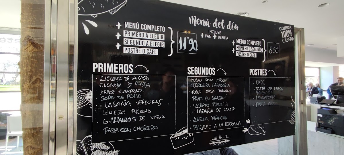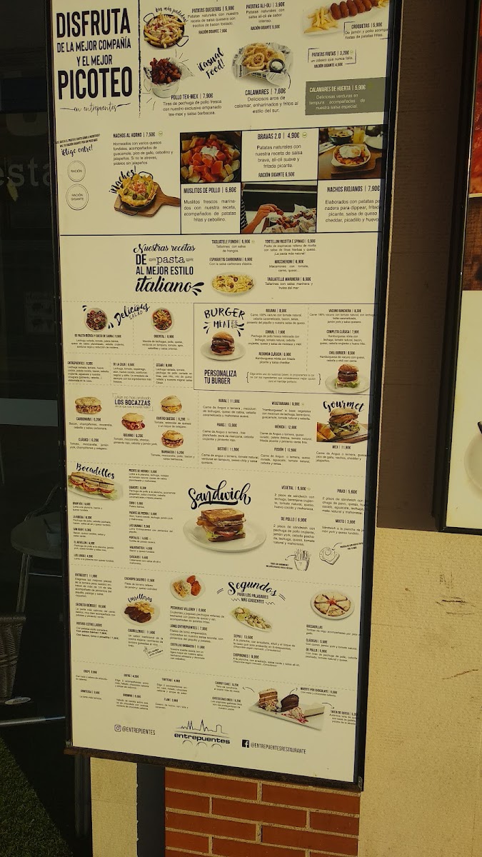 Introducing the menu at Entrepuentes, a cozy eatery located near the San Pedro Hospital in Logroño, La Rioja, where flavor meets convenience. With an array of bocadillos like the Bocadillo La Ribera featuring chicken, caramelized onion, and melted cheese, you’re sure to find a satisfying bite for just €7.90. The pasta selection shines, too, with dishes like the classic Spaghetti Alla Carbonara for €7.90, offering rich flavors and hearty portions.
